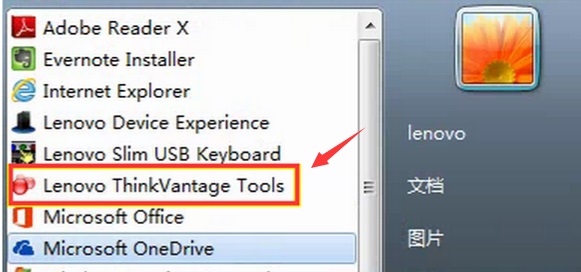 1、进入系统点击开始---程序,找到LenovoThinkVantageTools选项,点击此选项;
