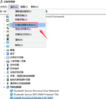 注意:如果没有网络适配器,你可以点击操作--扫描硬件改动!