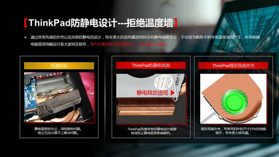 联想ThinkPad防静电设计(拒绝温度墙):防静电设计就不会让电脑风扇产生灰尘,那么就跟不用清理。