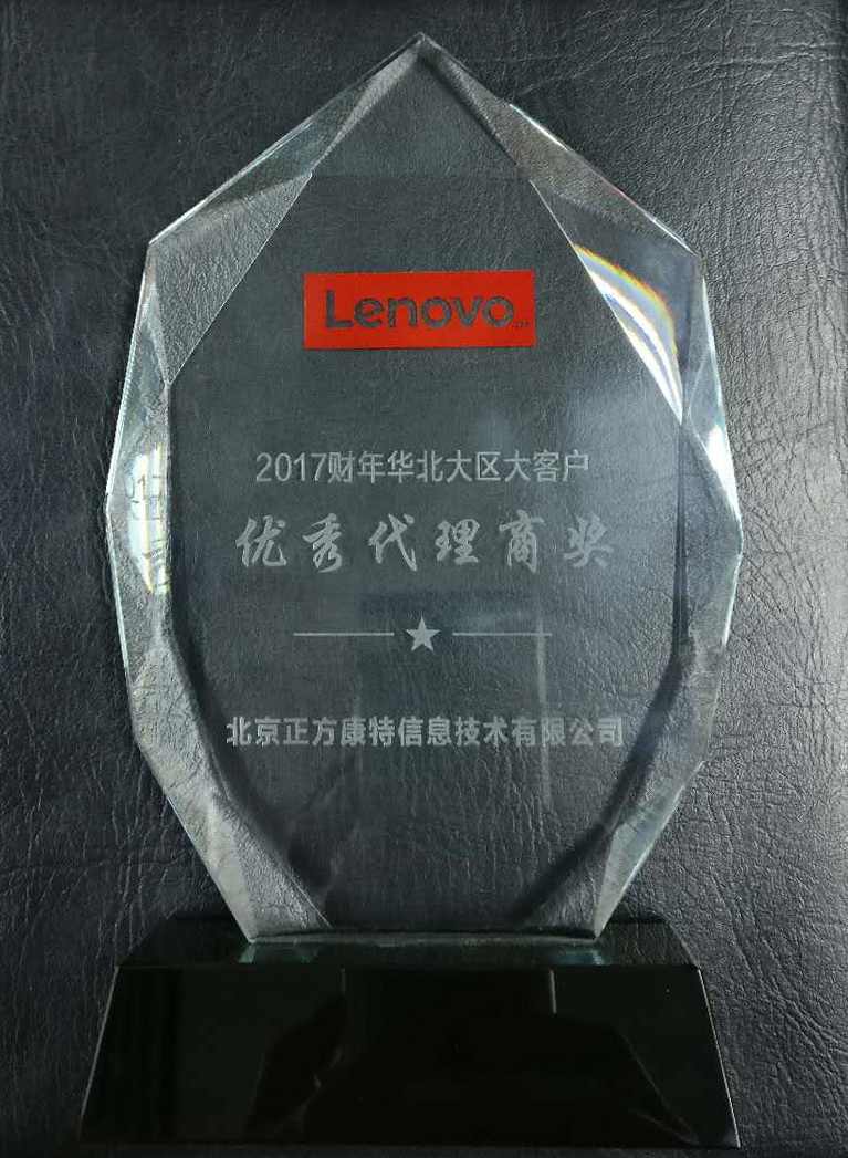 2018年4月在北京召开的联想代理商会议中,北京正方康特有限公司再次获得了,2017财年大客户优秀代理商奖项,代表了联想对北京正方康特有限公司的充分认可。