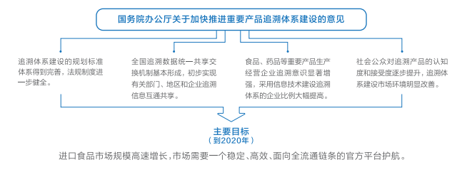 国务院加快推进重要产品追潮体系建设,进出口食品检验检疫,流通追溯是整个食品安全管理的重要一环。