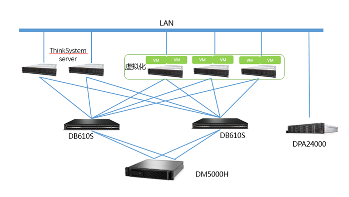 客户选择了3台联想SAP Hana认证机,其中2台sr950高可用机用于生产,1台SR650认证机用于开发和测试,VX super fusion认证节点3节点+VMware软件,以及两台ne1032万兆交换机,一台dm5000h存储设备和其他网络存储设备;