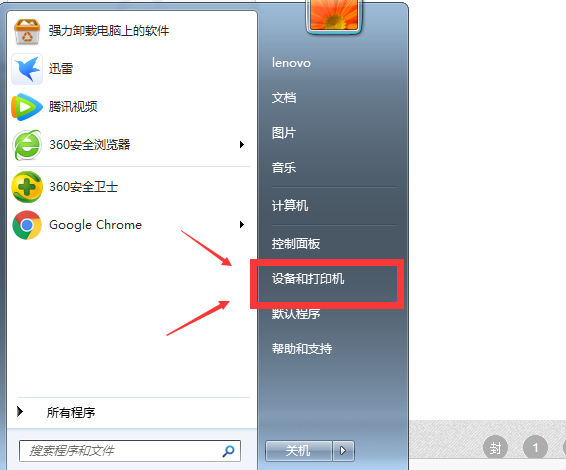 步骤八:点开电脑左下角开始,找到“设备和打印机”。(如下图所示)
