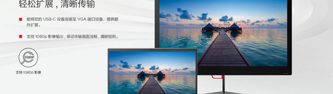 能将USB-C设备连接至VGA接口设备,提供额外扩展;支持1080p影像输出,保证传输画面流畅,清晰锐利;Type-C接口双面一致,无需固定方向,插拔更方便;体积小巧,方便携带;无需安装驱动或配置外接电源,即插即用,性能可靠。