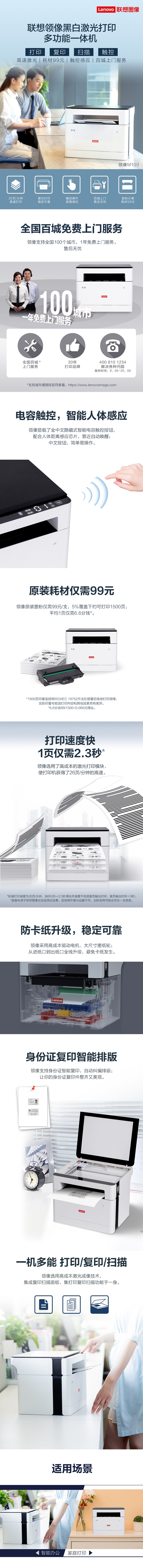 · 隐形式触控面板,人体感应,自动唤醒 · 易用稿台设计,让扫描、复印更加便捷、高效 · 强力走纸系统,卡纸率低于三万分之一 · 鼓粉分离,更低打印成本 · 一年百城上门服务$$类型:黑白激光机$$重量:9.6kg