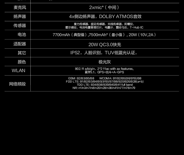 高通 Snapdragon 750G八核CPU主频高达2.2GHz,UFS 2.1的快速读写速度,比eMMC快2-3倍,搭配最高6GB运行内存及最高128GB UFS2.1闪存,Android 11T?轻松供应对日常办公应用;轻盈纤薄便于移动,薄至7.9mm,轻至520g;2K高清炫彩屏,带来现实世界的Max immersion体验;4边超窄边框设计屏占比85.17%;炫彩夺目的2K(2000x1.200)&400nits高亮度呈现超高清视觉效果;数据速率可达10Gbit/s,比4G快100倍可满足大数据