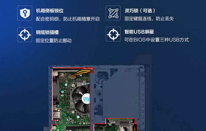 1. 13.6L 机箱,节省办公空间$$2. 英特尔第十代酷睿处理器,H470 芯片组,动力强劲$$3. 最大支持 380W 电源,可支持更强性能配置$$4. 前置 2 个 USB 3.2 Gen2+4个 USB 3.2 Gen1接口;支持 PCI 卡槽,可兼容更多客户旧有设备$$5. 可选内置 Wi-Fi 和内置扬声器,让办公环境更加简洁
