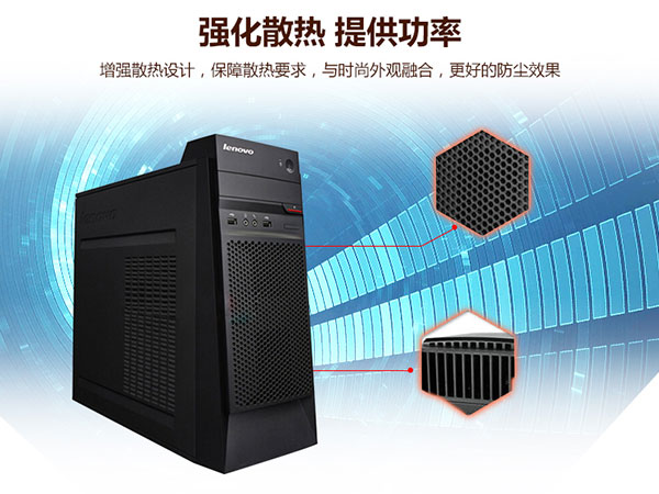 联想启天M4600前脸的独特蜂窝孔设计,和下面二级出风口强化散热,保证散热要求,让系统长时间稳定高效的运行。