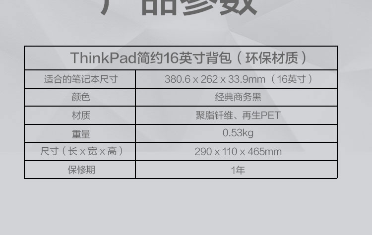 产品名称:ThinkPad简约16英寸背包 (4X41C12468)