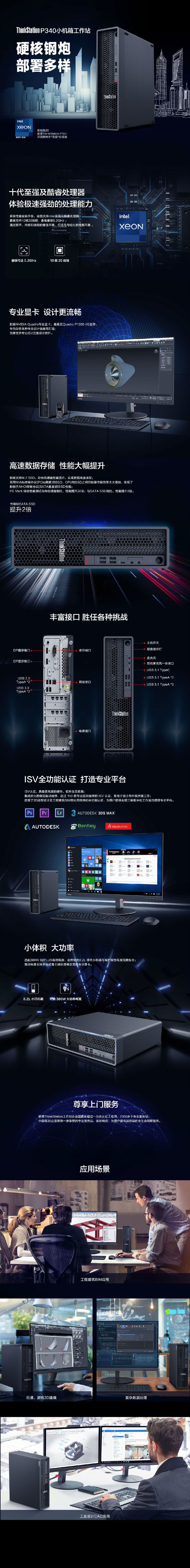 系统性能全新升级,全面支持lntel至强及酷睿处理器;最高支持10核20线程,最高睿频5.2GHz;配备NVIDIA Quadro专业显卡,最高至Quadro P1000 4G显存,完美支持专业ISV三维设计软件。板载支持M.2 SSD,采用NVMe传输协议(PCle通道)的SSD,CPU和SSD之间的数据传输效率大大增加,PC Mark综合性能测试与传统硬盘相比,性能提升20倍;选配380W 92PLUS高效电源,业界领先8.2L塔式小机箱与高扩展性电源完美组合。ThinkStation P340 小机